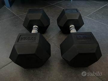 Due manubri per palestra 22,5 kg l’uno totale 45 kg. Ghisa rivestita in gomma, manico antiscivolo in ottime condizioni, praticamente nuovi. Vendo per passaggio ad attrezzatura superiore. Non vendibili singolarmente. Disponibili altre misure nei miei annunci. Solo ritiro a mano, accetto anche Satispay.