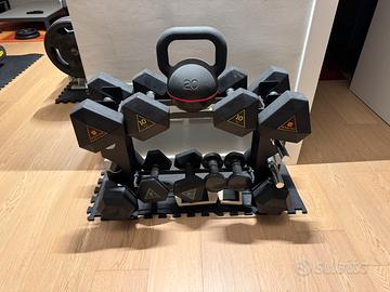 2 manubri da 22,5 kg 2 manubri da 20 kg 2 manubri da 17,5 kg 2 manubri da 15 kg 2 manubri da 12,5 kg 2 manubri da 10 kg 2 manubri da 7,5 kg 2 manubri da 5 kg