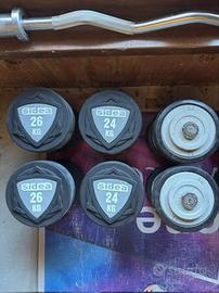 Vendo manubri Sidea 26kg Sidea 24kg Panatta 22kg Prezzo singola coppia 2.7€/kg Se presi in blocco valutiamo trattativa