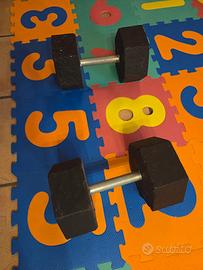 Coppia di manubri. Pesi in cemento 2x10kg. MAI USATI ma con segni.