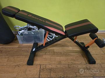 Vendo serie manubri perfetti da 4 a 40 Panatta Sport a 2,5 euro a kg, manubri Technogym e Teca, serie manubri gommati con qualche segno di usura sulle gomme ma resto perfetto a 1.5 euro a kg, eventualmente anche singoli manubri, manubri tondi o esagonali, rastrelliera porta manubri, portadischi, porta bilanciere, parallele per dips da 45 euro, Half rack 120 euro, portabumper verticali da 40 euro; panca inclinabile con appoggi bilanciere da 50euro, panca inclinabile senza appoggi da 35 euro, bilancieri da 10 euro, dischi da 1,5 euro a kg, coppia manubri ricaricabili da 12 euro. Inoltre sacco Fitboxe da 50 euro, sacchi da boxe da 40 euro, punging ball guantoni e protezioni da Arti Marziali, Tatami da 100x100x20, pesetti rivestiti in gomma da 1-2-3-4-5-6-7-8 kg; Body Bar, Kettlebell, Bumper e porta bumper, Sandbag, Dischi gommati o ghisa e portadischi da 25-28-30-50mm. Fitness pump 30 euro, Ab Circle per addominali 40 euro, tappetino per esercizi a terra da 4 euro, Stepper 15 euro, Fitball 10 euro, sandbag, wall ball, Battle rope, Panca olimpionica da palestra Technogym 270 euro, panca inclinabile multifunzione con Lat Machine, panca Scott e leg curl e extension a 170 euro, Panca inclinabile Technogym 270 euro. Tutte pari a nuovo. Panca piana professionale da palestra Technogym 220 euro, panca addominale da 20 euro, Tbar, Trx da 15 euro; palle mediche e Fitball di diverse misure, Step da 10 euro; Circle per Pilates 12 euro; Spalliera singola 120 euro, parastinchi, paracolpi, guantoni, attrezzi di vario tipo per arti marziali, Kettlebell da 2,5 euro a kg; sand bag; Remoergometro professionale nuovo a 750 euro; ciclette da 30 euro, Spinbike da 120 euro. Tapis roulant elettrico da 180 euro, Tatami 200x100x15 cm a 10 euro a mq; set Body Pump e Body Bar. Panche spogliatoi con cappelliera e appendiabiti armadietti spogliatoi.