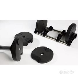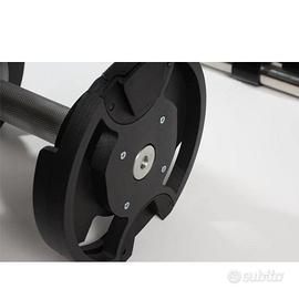 Abbiamo a disposizione manubri regolabili a scatto da 20, 24, 32, 36, 40, 50 kg, incrementi ogni 2 kg o 4 kg.