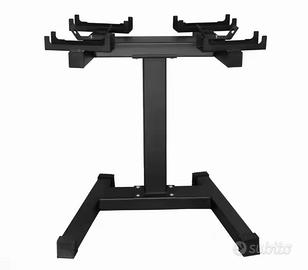 Coppia di manubri regolabili professionali in acciaio elettrocromato, nuovi e ancora imballati, di livello superiore rispetto ai classici modelli in ghisa nera.