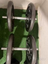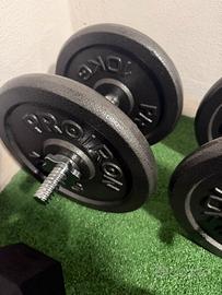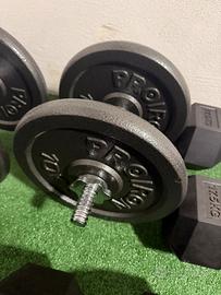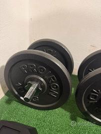 Vendo manubri regolabili con dischi PROIRON in ghisa, 20 kg per manubrio(10 kg x lato).