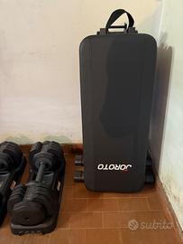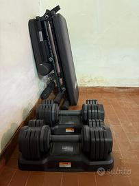 Vendo set di manubri regolabili fino a 24kg per manubrio più panca, vendo per trasferimento. Manubri e panca come nuovi, sono stati usati soltanto 4 volte.