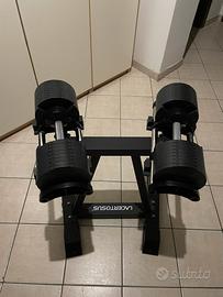 Vendo manubri regolabili selektor Lacertosus ORIGINALI, peso selezionabile da 2 a 32 kg.