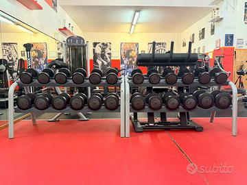 Per rinnovo attrezzature vendo manubri Technogym con impugnatura girevole da 4 a 24kg e n2 rastrelliere