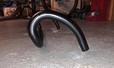 Manubrio BDC compatto, Zipp service course Sc 80, drop. ravvicinato 125 mm, reach compatto 80 mm, width CC 44 , bar width basso 46, alluminio, solo 270g, flare 4°, attacco compatibile 77,1 e 31,8. prezzo listino 136€,