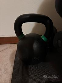 Vendo manubrio regolabile con dischi in ghisa fino ad un massimo di 10kg Decathlon e kettlebell da 24kg della Lacertosus.