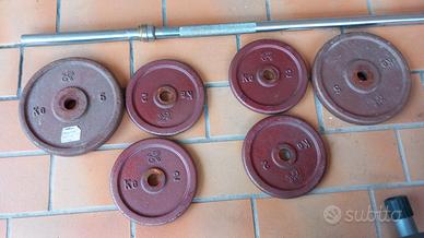 Manubrio per sollevamento pesi, + pesi + panca - m