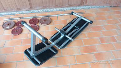Manubrio per sollevamento pesi, + pesi + panca - manubrio lunghezza 150 cm + 6 pesi (4 da 2 Kg + 2 da 5 Kg) + panca - usato, buono stato - come da foto - [qw 9871] -