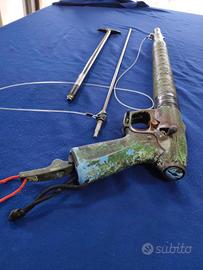 Vendo fucile oleopneumatico Mares Cyrano misura 70 con variatore di pressione sapientemente mimetizzato per un ottimale azione di pesca. Completo di asta in acciaio armonico brunito del diametro di 6 mm, scorri sagola idrodinamico originale e sagola in monofilo trasparente da 1,4 mm. Completo di pompa di ricarica.