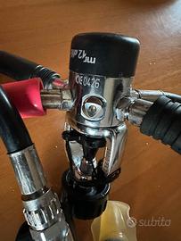 mares Mr 12 DFC con 2 secondi stadi, manometro e frusta , 2 x stadi ,manometro e frusta sono revisionati, 1 stadio pullito ulrasuoni, cambiato sint filtro, interno perfetto , pressione intermedia adjustata come da fabrica,prezzo nn trattabile