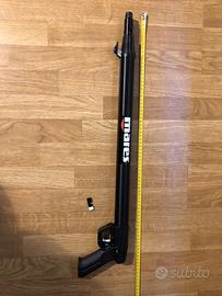 Vendo per inutilizzo e sfoltimento attrezzatura fucile oleopneumatico Mares Medi Sten con variatore di potenza, nuovo, mai visto il mare. Anzi, mai uscito da casa. Acquistato qualche mese fa da rimanenze di magazzino. Aperto per controllo e sostituzione o-ring deformati circa un mese fa. Ingrassaggio delle parti filettate. È stata rimossa la sicura perché pensavo di usarlo (generalmente la smonto). Il fucile è stato lasciato carico e privo di olio per verificare la tenuta prima di rabboccare definitivamente. Per mancanza di tempo non ho ancora fatto il rabbocco e attualmente è privo di olio. Viene venduto fornito di tutto ciò che si vede in foto: fodero originale, asta nuova (comprata da me), arpione nuovo, fiocina Omer nuova, pompa, copri impugnatura in gomma bianca, carichino. Possibilità di spedizione.
