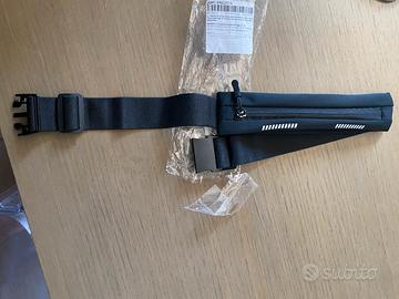 Marsupio da corsa colore nero con dettagli catarifrangenti per una maggiore sicurezza durante gli allenamenti serali.