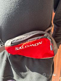 Marsupio Salomon ideale x lunghe camminate e running. Usato pochissimo, completo delle due borracce come in foto, vendo a €15. Zona in cui si trova l articolo Aosta