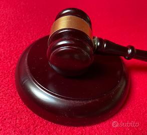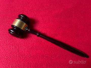 Martelletto in legno di alta qualità con blocco sonoro. Perfetto per giochi che prevedono aste o aste in generale. In legno scuro. Alla base manca uno dei 4 feltrini