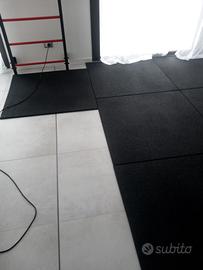 10 Mattonelle di gomma alta qualità per pavimento antiurto. Adatte a palestra, crossfit, area giochi e bricolage. 1m x 1m , 1,5 cm di spessore, grana fine. Usate a scopo abbellitivo, pari al nuovo. Compresa rete andtisdrucciolo per evitare che si muovani. Vendo stock completo, visto e piaciuto. Solo ritiro.
