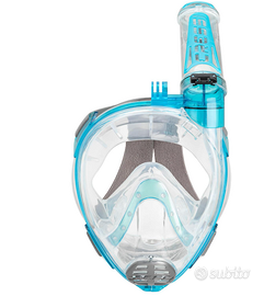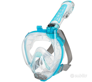 Maschera Cressi Duke Action Full Face S/M – Acquamarina full Vendo la leggendaria Cressi Duke Action, la maschera integrale (Full Face) di fascia alta per lo snorkeling. Non è un giocattolo, ma un’attrezzatura professionale di Cressi (dal 1946), studiata per offrire il massimo della sicurezza e del comfort. 🌊🧜♀️ NUOVA Perché scegliere la Cressi Duke Action? Sicurezza Totale (CO2 Safe): Progettata con un sistema di circolazione dell’aria brevettato che riduce al minimo l’accumulo di anidride carbonica. Si respira in modo naturale e senza sforzo. Visione Panoramica a 180°: Lente in policarbonato ultra-chiara che non si appanna mai (No Fog), per non perdere nemmeno un dettaglio del fondale. Materiali Premium: Facciale in silicone 100% anallergico, morbidissimo sul viso, che garantisce una tenuta perfetta contro le infiltrazioni. Tubo Dry (Anti-Allagamento): Lo snorkel ha una speciale valvola a galleggiante che impedisce all'acqua di entrare se viene sommerso da un'onda. Supporto Action Cam: Supporto integrato sulla parte superiore per montare la tua GoPro (o altre cam) e filmare le tue esplorazioni a mani libere! 📸 Dettagli del prodotto: Colore: Trasparente / Acquamarina (meraviglioso sotto la luce del sole). Taglia: S/M - Unisex (ideale per donne, ragazzi o uomini con viso medio/sottile). Stato: 💎 Nuova, mai usata. Perché acquistarla? A differenza delle maschere economiche, questa garantisce aria fresca continua e una qualità costruttiva superiore. È l'acquisto definitivo per le tue prossime vacanze al mare! 🏖️