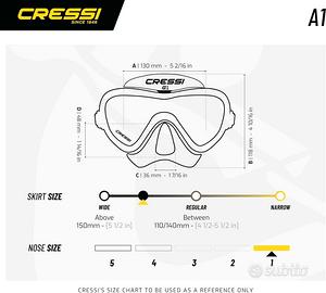Vendo maschera per immersioni mai usata, marca Cressi e modello A1.