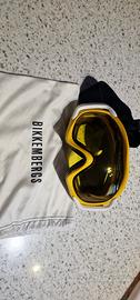 Maschera da neve Bikkembergs con lenti gialle e sacca. - Colore montatura: Giallo e bianco - Colore lenti: Giallo - Materiale cinturino: Tessuto nero - Include sacca porta maschera con logo Bikkembergs