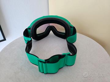Maschera da sci Bottega Veneta, colore verde con lente a specchio. Logo Bottega Veneta sulla fascia elastica
