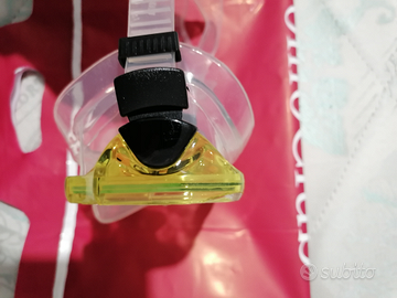 Maschera da sub con vetro temperato, misura regolabile, con custodia in plastica.