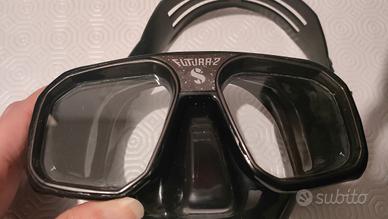 Maschera sub Scuba Pro Futura 2, usata forse una sola volta, come nuova. Il silicone è morbido, non indurito, e lucido ed i vetri non sono graffiati. La maschera è sempre stata conservata nella sua custodia originale, come da foto.