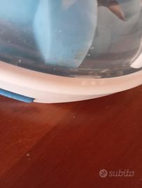 vendo maschera Decathlon in buono stato, ⚠️ LA MASCHERA NELLE FOTO É LAVATA E PER QUESTO CI SONO DELLE GOCCIE⚠️, essa presenta imprecisioni, ci sono granelli di sabbia( che non creano alcun problema, ma possibilmente rimovibili, per farlo occorre essere precisi altrimenti la maschera si rovina), questi sono presenti nella gomma sotto il filtro d' aria destro in contatto con l angolo di attaccatura alla plastica trasparente, Foto 5. ⚠️IN OLTRE SONO PRESENTI DEI GRAFFI E ALONI, CHE NON CREANO DIFFICOLTA NELLA VISUALE, MA SONO VISIBILI.⚠️, Foto 4 Il resto della maschera, il tubo e la retina, sono intatti, oltre alcuni aloni nel tubo che non creano problemi alla respirazione.