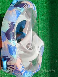 Maschera panoramica da mare per fare snorkeling, modello Easybreath 900, con laccio largo regolabile per aderire bene al viso, boccaglio con galleggiante per bloccare l'ingresso dell'acqua.