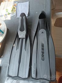 vendo pinne 42 cressi pro star più maschera cressi sub super occhio, idealizzate per la pesca in apnea. usate pochissimo perché sono una sega! :-) sono entrambi in perfette condizioni e di ottima qualità. la maschera si adatta molto bene al viso con doppia guarnizione di gomma anallergica. prezzo 30