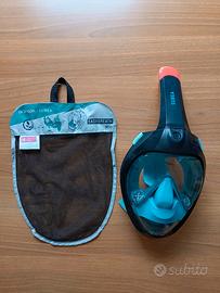 Vendo maschera snorkeling Decathlon Subrea Easybreath 900 indossata una sola volta, come nuova. Questo modello per la sua conformazione consente l'immersione fino a 3 metri di profondità, il prezzo è trattabile.