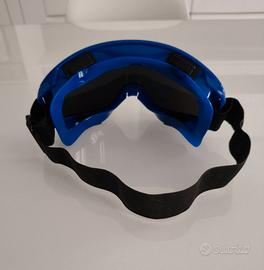Maschera Motocross/sci/snowboard, Nuova mai usata ancora in imballo originale, colore Blu, con lente scura con protezione UV 400, antiriflesso, antiappannamento. La maschera è ergonomica e resistente agli impatti. Tutto come foto illustrate. Misure: Larghezza 128 mm, Altezza 86 mm, Naso 24 mm