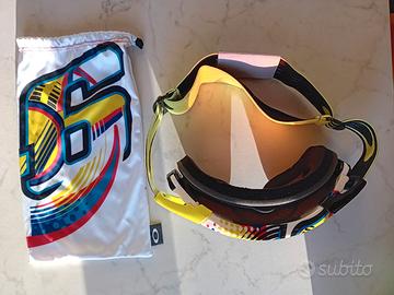 Maschera VR46 Airbrake MX con custodia. Con un'elevata resistenza agli impatti che ti rende invincibile, questo traguardo tecnologico è il primo modello MX con una lente in pura Plutonite. È il nuovo metro di paragone in termini di protezione, e ti consente di sposare l'approccio adattati ed eccelli grazie alla tecnologia Switchlock di Oakley, il segreto per cambiare le lenti rapidamente e con facilità. La visuale è ampia e aperta, la comodità non ha paragoni, e le prestazioni lasciano tutte le altre maschere a lottare per il secondo posto. Composizione: 60% PE, 40% PC