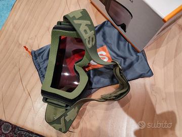 Vendo maschera occhiali Spy verde oliva con lente rossa, elastico con silicone antiscivolo.