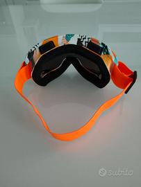 Ottima maschera sci/snowboard, Nuova mai usata ancora in imballo originale, colore Arancione/Bianco fantasia, con lente scura con protezione UV 400, antiriflesso, antiappannamento. La maschera è ergonomica e resistente agli impatti.