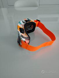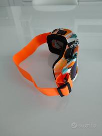 Ottima maschera sci/snowboard, Nuova mai usata ancora in imballo originale, colore Arancione/Bianco fantasia, con lente scura con protezione UV 400, antiriflesso, antiappannamento. La maschera è ergonomica e resistente agli impatti.