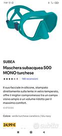 Vendo per errato acquisto maschera subea 500 usata solo una volta. Ottima qualità del silicone, che permette un adattamento a tutti i tipi di viso.