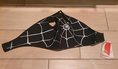 Maschera viso da neve, marca Brekka, anti vento e anti freddo, foderata in pile, disegno ragnatela spiderman, chiusura con velcro, taglia unica. Nuova ancora con cartellini attaccati. A Milano o a Cervinia [AO] posso consegnare di persona.