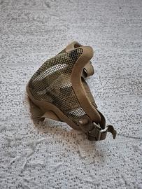 Mascherina per soft air in colorazione mimetica con rete metallica ad alta protezione. Hanno una finitura nel perimetro in stoffa resistente. Hanno 2 regolazioni per lato. Condizione pari al nuovo.