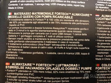 Modello BESTWAY materasso con pompa elettrica integrata, amovibile e ricaricabile, per 2 persone. Materiale PVC e POLIESTERE, morbido e resistente. Gonfiaggio in 3 minuti, sgonfiaggio istantaneo. Acquistato alla DECATHLON a febbraio 2025; usato 2 volte, praticamente NUOVO.