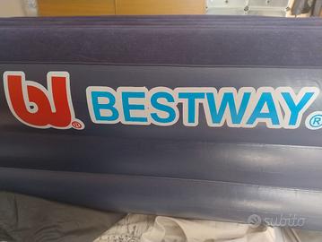 Materasso Bestway Gonfiabile. Compressore integrato a 220 volt. Gonfiaggio in 3 minuti. Altezza 50 cm, lunghezza 195 cm, larghezza 100 cm. Completo di fodera con fibbie per trasporto a spalla. Perfettamente funzionante. Utilizzato due volte.