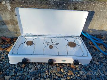 Vendo fornello da campeggio con predisposizione per bombola a gas diversi tappetini due letti gonfiabili con pompa a pedale