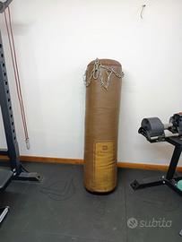 - sacco DOMYOS in pelle marrone, altezza 130 cm, diametro circa 35 cm, peso circa 35 kg con catene per aggancio