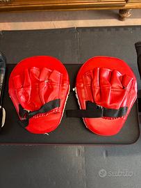 Vendo guantoni marca Leone 12-oz Paracolpi rosso per allenamenti boxe Paratibie Leone taglia L