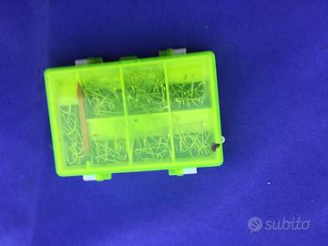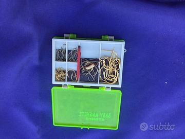 Scatoline organizer con ami calamita , girelle, piombini,e un gamberetto esca