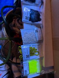 Cedo vari pacchetti di ciniglia, una cinquantina di occhi a clessidra da 1 grammo,vari ami del 6 a gambo lungo medio e corto e 6 streamer