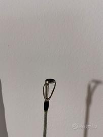 Canna utilizzata ma ferma da qualche anno, perfetta per chi cerca un attrezzo leggero ma con una grande energia, sensibilitá dovuta alla sua vetta tubolare e ottima a mare formato.