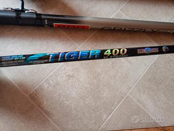 Teleregolabili Maver 777 élite 10m * cond. 8/10 Maver 123 8m cond. 9,5/10 + Globe Fishing Tiger 400 4m cond. 9,5/10 (senza mulinelli) Valuto anche proposte per le singole canne. *la 777 élite ha una riparazione su una sezione fatta da un serio professionista, non ha modificato la parabola, per questo ho messo 8/10, ma merita di più.
