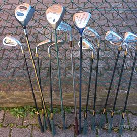 12 mazze da Golf di varie misure ,set non completo nella numerazione visto che si tratta di attrezzi ancora utilizzabili ma datati , a corredo c'è la sacca in quoio con cerniere non tutte integre (che do in onaggio) e un numero di circa 15 palline.